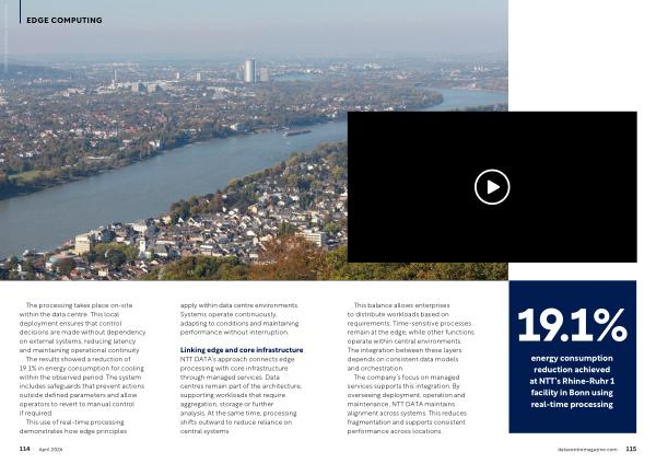 Linking edge and core infrastructure NTT DATA’ s approach connects edge processing with core infrastructure through managed services. Data centres remain part of the architecture, supporting workloads that require aggregation, storage or further analysis. At the same time, processing shifts outward to reduce reliance on central systems.