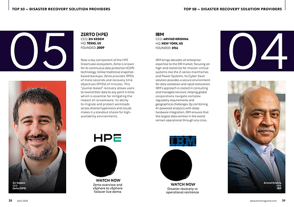 Now a key component of the HPE GreenLake ecosystem, Zerto is known for its continuous data protection( CDP) technology. Unlike traditional snapshotbased backups, Zerto provides RPOs of mere seconds and recovery time objectives( RTOs) of minutes. This“ journal-based” recovery allows users to rewind their data to any point in time, which is essential for mitigating the impact of ransomware. Its ability to migrate and protect workloads across diverse hypervisors and clouds makes it a standout choice for highavailability environments. Ziv Kedem CEO Zerto( HPE)