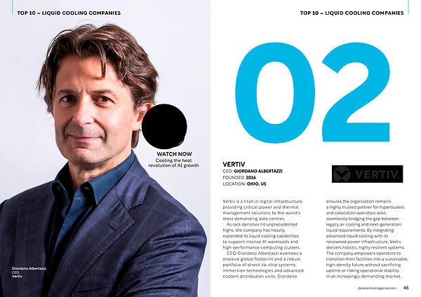 CEO Giordano Albertazzi oversees a massive global footprint and a robust portfolio of direct-to-chip systems, immersion technologies and advanced coolant distribution units. Giordano ensures the organisation remains a highly trusted partner for hyperscalers and colocation operators alike, seamlessly bridging the gap between legacy air cooling and next-generation liquid requirements. By integrating advanced liquid cooling with its renowned power infrastructure, Vertiv delivers holistic, highly resilient systems. The company empowers operators to transition their facilities into a sustainable, high-density future without sacrificing uptime or risking operational stability in an increasingly demanding market.
