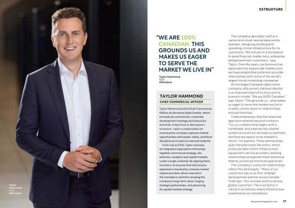 As the largest Canadian data centre company, eStruxture’ s national identity is an important part of its story and its business model.“ We are 100 % Canadian,” says Taylor.“ This grounds us – and makes us eager to serve the market we live in. It really comes down to relationships and partnerships.”