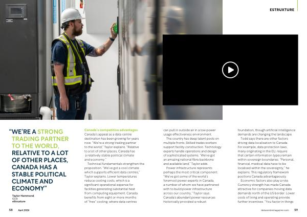 The country has deep talent pools on multiple fronts. Skilled trades workers support facility construction. Technology experts handle operations and design of sophisticated systems.“ We’ ve got an amazing national fibre backbone and available land,” Taylor adds.