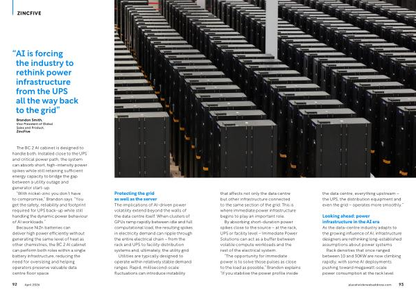 “ The opportunity for immediate power is to solve those pulses as close to the load as possible,” Brandon explains.“ If you stabilise the power profile inside the data centre, everything upstream – the UPS, the distribution equipment and even the grid – operates more smoothly.”