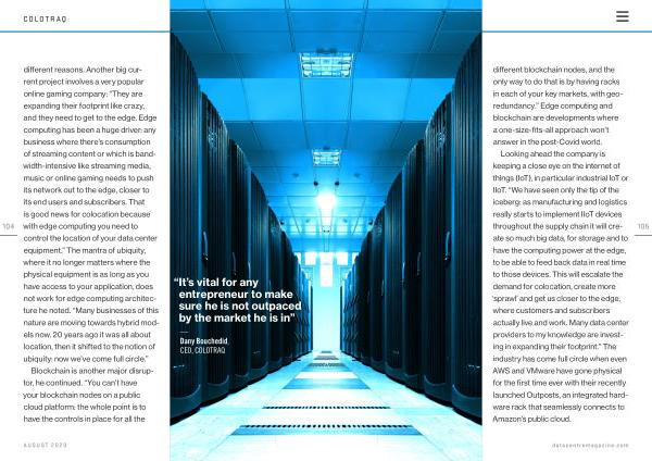 104 different reasons . Another big current project involves a very popular online gaming company : “ They are expanding their footprint like crazy , and they need to get to the edge . Edge computing has been a huge driver : any business where there ’ s consumption of streaming content or which is bandwidth-intensive like streaming media , music or online gaming needs to push its network out to the edge , closer to its end users and subscribers . That is good news for colocation because with edge computing you need to control the location of your data center equipment .” The mantra of ubiquity , where it no longer matters where the physical equipment is as long as you have access to your application , does not work for edge computing architecture he noted . “ Many businesses of this nature are moving towards hybrid models now . 20 years ago it was all about location , then it shifted to the notion of ubiquity : now we ’ ve come full circle .”
