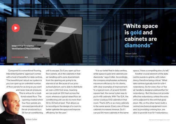 “ It is our belief that in data centres , white space is gold and cabinets are diamonds ,” says Collier . Accordingly , the company emphasises achieving maximum efficiency for its clients , with clear examples of improvement . “ In a typical room , of around 10,000 square feet , the owner ’ s plan was to put in 418 cabinets . With Tier E / A , the owner could put 512 cabinets in that room . That ’ s 22 % or so more cabinets in the same space . Every one of those cabinets increases revenue . So if I can put 94 more cabinets in the same space , I have a compelling story to tell .”