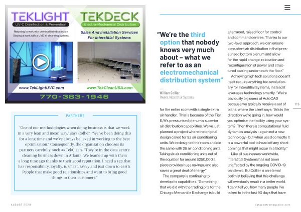 Achieving high tech solutions doesn ’ t itself require anything too revolutionary for Interstitial Systems , instead it leverages technology smartly . “ We ’ re obviously big users of AutoCAD because we typically receive a set of plans , where the client says : ‘ this is the direction we ’ re going in , how would you optimise the facility using your system ?’ Then there ’ s computational fluid dynamics analysis - again not a new technology - but when used correctly it is a powerful tool to head off any shortcomings that might occur in a facility .”