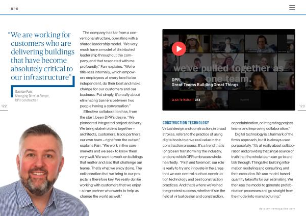 Virtual design and construction , in broad strokes , refers to the practice of using digital tools to drive real value in the construction process . It ’ s a trend that ’ s long been transforming the industry , and one which DPR embraces wholeheartedly . “ First and foremost , our role is really to try and innovate in the areas that we can control such as construction technology and best construction practices . And that ’ s where we ’ ve had the greatest success , whether it ’ s in the field of virtual design and construction , or prefabrication , or integrating project teams and improving collaboration .”