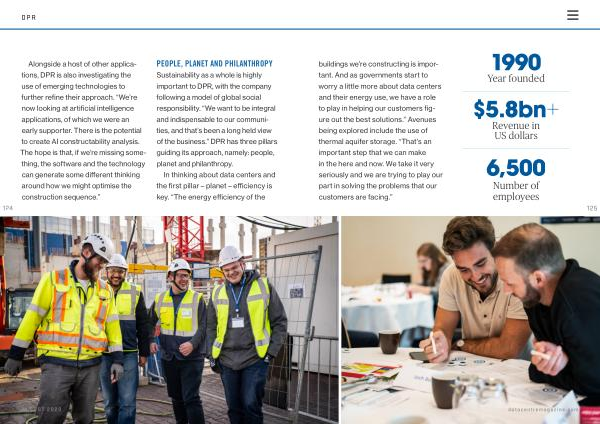 Sustainability as a whole is highly important to DPR , with the company following a model of global social responsibility . “ We want to be integral and indispensable to our communities , and that ’ s been a long held view of the business .” DPR has three pillars guiding its approach , namely : people , planet and philanthropy .