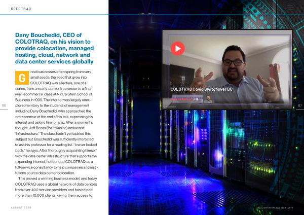 G reat businesses often spring from very small seeds : the seed that grew into COLOTRAQ was a lecture , one of a series , from an early . com entrepreneur to a final year ‘ ecommerce ’ class at NYU ’ s Stern School of Business in 1999 . The internet was largely unexplored territory to the students of management including Dany Bouchedid , who approached the entrepreneur at the end of his talk , expressing his interest and asking him for a tip . After a moment ’ s thought , Jeff Bezos ( for it was he ) answered : “ Infrastructure .” The class hadn ’ t yet tackled this subject but Bouchedid was sufficiently interested to ask his professor for a reading list . “ I never looked back ,” he says . After thoroughly acquainting himself with the data center infrastructure that supports the expanding internet , he founded COLOTRAQ as a full-service consultancy to help companies and institutions source data center colocation .