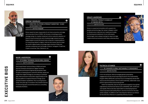 Under her leadership , Equinix has garnered recognition from global organisations and financial indices such as NASDAQ , CDP , US EPA and Just Capital . Patricia was also responsible for developing Equinix ’ s initial Corporate Sustainability Report , the first of its kind for the data centre industry . In addition to her role at Equinix , Patricia is an Advisor for the CSU Chico Women in Leadership Advisory Council .