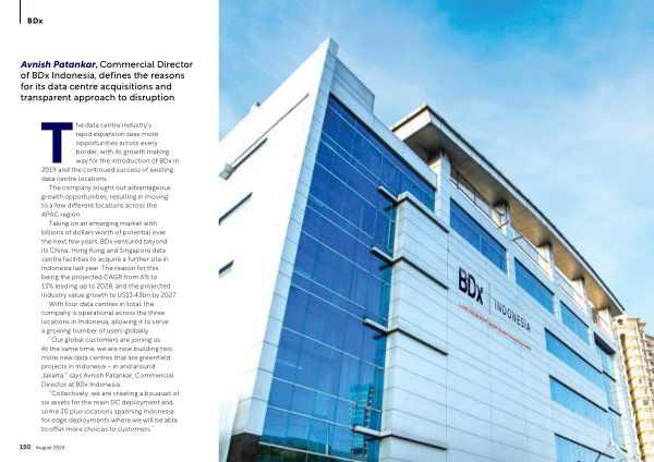 Avnish Patankar , Commercial Director of BDx Indonesia , defines the reasons for its data centre acquisitions and transparent approach to disruption