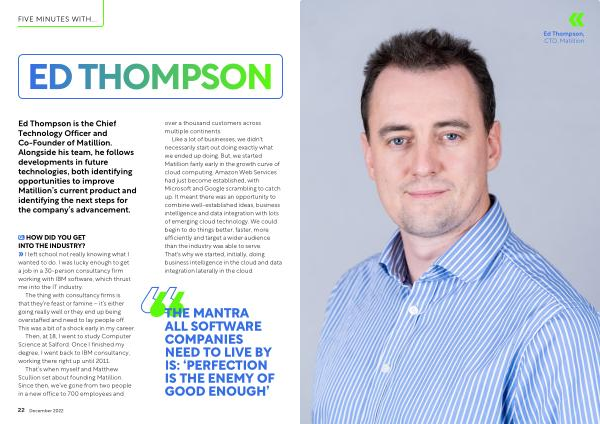 Ed Thompson is the Chief Technology Officer and Co-Founder of Matillion . Alongside his team , he follows developments in future technologies , both identifying opportunities to improve Matillion ’ s current product and identifying the next steps for the company ’ s advancement .