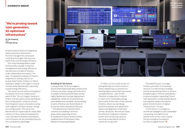 “ Our long-standing alliance with Climaveneta, a leader in thermal management and energy efficiency, has become a model of industrywide collaborative innovation,” he says.“ It supplied hundreds of indirect evaporative cooling units to our Huailai Data Centre Campus in Hebei, helping us adapt to the region’ s unique climate while dramatically improving overall energy efficiency.