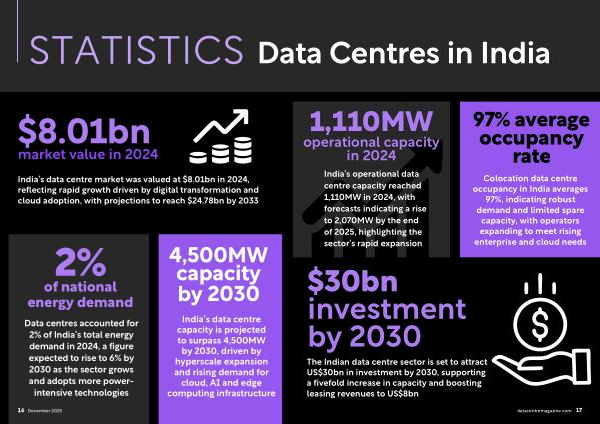 India’ s operational data centre capacity reached 1,110MW in 2024, with forecasts indicating a rise to 2,070MW by the end of 2025, highlighting the sector’ s rapid expansion