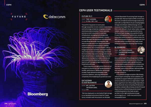 “ Future PLC has grown in recent years through acquisition of over a dozen media brands and technology companies , bringing a complex and diverse data ecosystem . Future operates services on both cloud and on-premises infrastructure , leveraging technologies that need to balance value and flexibility . Future ' s technology team has also grown and diversified to meet these demands , requiring their SRE team to provide ever more robust and flexible solutions without compromising on stability or performance . As a content publisher , data is integral to Future ' s operation , and Ceph was the clear choice to ensure its technology teams had the tools at their disposal to manage data at scale . Ceph allows Future to deploy storage across its datacenters , trusting that its data is distributed and available while enabling its development teams to self-manage storage requirements from Kubernetes with ease .