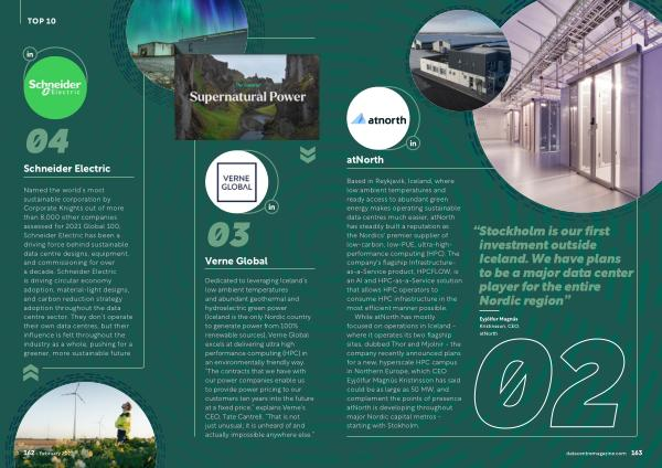 Named the world ’ s most sustainable corporation by Corporate Knights out of more than 8,000 other companies assessed for 2021 Global 100 , Schneider Electric has been a driving force behind sustainable data centre designs , equipment , and commissioning for over a decade . Schneider Electric is driving circular economy adoption , material-light designs , and carbon reduction strategy adoption throughout the data centre sector . They don ’ t operate their own data centres , but their influence is felt throughout the industry as a whole , pushing for a greener , more sustainable future .