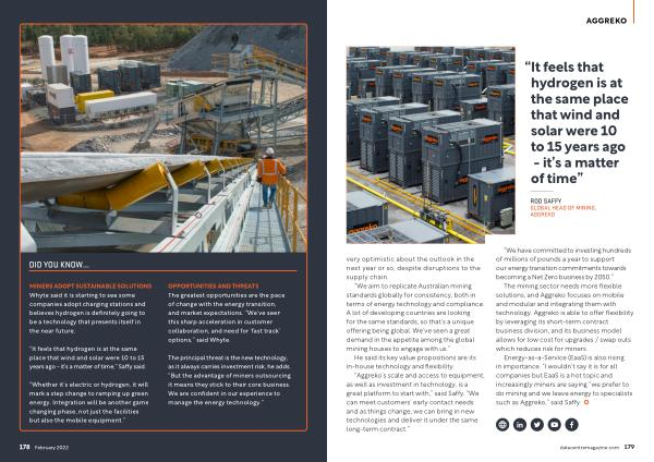 “ We aim to replicate Australian mining standards globally for consistency , both in terms of energy technology and compliance . A lot of developing countries are looking for the same standards , so that ’ s a unique offering being global . We ’ ve seen a great demand in the appetite among the global mining houses to engage with us .”