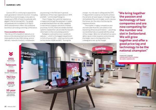 Pellegrino outlined his role in platform delivery — which is the biggest department in CIO of Sunrise UPC — and how he focuses on the stacks of B2B and B2C . “ During the