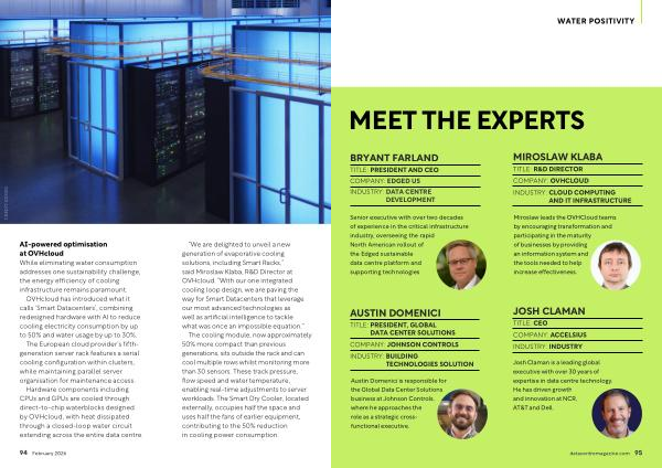 Josh Claman is a leading global executive with over 30 years of expertise in data centre technology. He has driven growth and innovation at NCR, AT & T and Dell. datacentremagazine. com 95