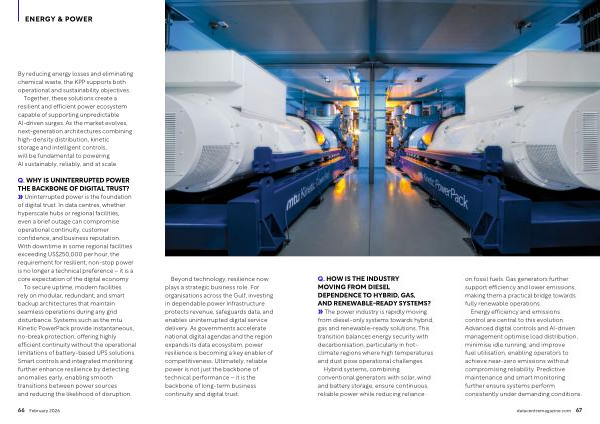 » Uninterrupted power is the foundation of digital trust. In data centres, whether hyperscale hubs or regional facilities, even a brief outage can compromise operational continuity, customer confidence, and business reputation. With downtime in some regional facilities exceeding US $ 250,000 per hour, the requirement for resilient, non-stop power is no longer a technical preference – it is a core expectation of the digital economy.