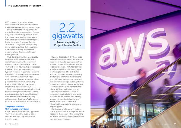 David is direct about it.“ These large language model providers are going to need more than 2.2 gigawatts, so then you start to look at other sites that are relatively close by.” AWS has facilities in Indiana and Mississippi, with more locations planned. The distributed approach introduces latency: training clusters that span multiple locations need different software optimisation than clusters in a single building. Physics, rather than ambition, becomes the limit.