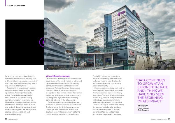 Kari Maikkola, Head of Data Centre Solutions, Telia Company datacentremagazine. com 59