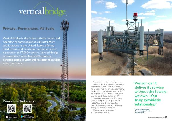 Vertical Bridge is the largest private owner and operator of communications infrastructure and locations in the United States, offering build-to-suit and colocation solutions across a portfolio of 17,000 + towers. Vertical Bridge achieved the CarbonNeutral ® company certified status in 2020 and has been recertified every year since.