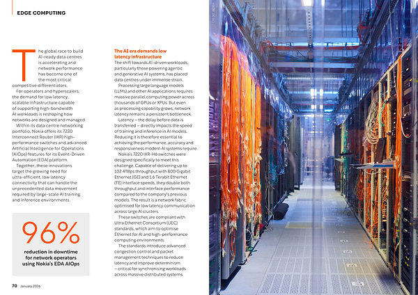Within its data centre networking portfolio, Nokia offers its 7220 Interconnect Router( IXR) highperformance switches and advanced Artificial Intelligence for Operations( AIOps) features for its Event-Driven Automation( EDA) platform.