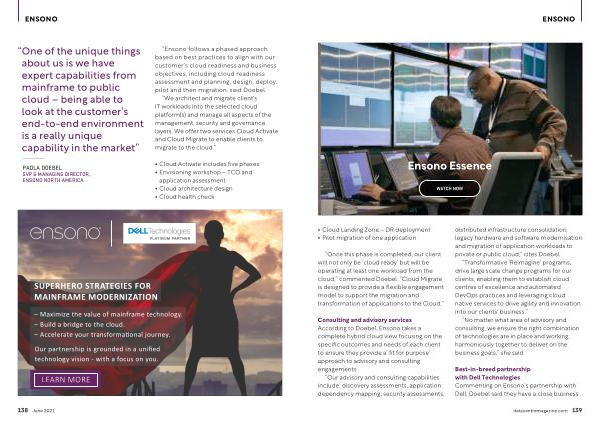 Best-in-breed partnership with Dell Technologies Commenting on Ensono ’ s partnership with Dell , Doebel said they have a close business
