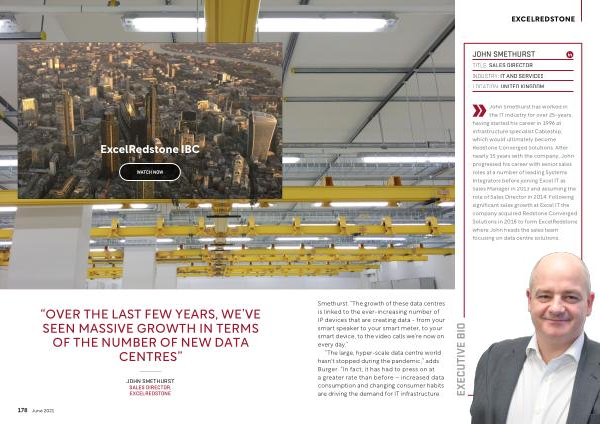John Smethurst has worked in the IT industry for over 25-years , having started his career in 1996 at infrastructure specialist Cableship , which would ultimately become Redstone Converged Solutions . After nearly 15 years with the company , John progressed his career with senior sales roles at a number of leading Systems Integrators before joining Excel IT as Sales Manager in 2013 and assuming the role of Sales Director in 2014 . Following significant sales growth at Excel IT the company acquired Redstone Converged Solutions in 2018 to form ExcelRedstone where John heads the sales team focusing on data centre solutions .