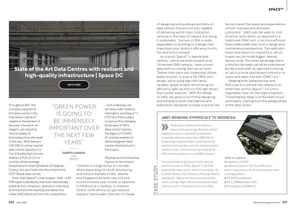 - well underway , we sat down with Hawkins , Harrington , and Space DC ’ s CTO Nick Stavroulakis , to discuss the changing landscape of SEA ’ s data centre industry , the legacy of COVID- 19 , and the realities of delivering green data centre infrastructure in the tropics .