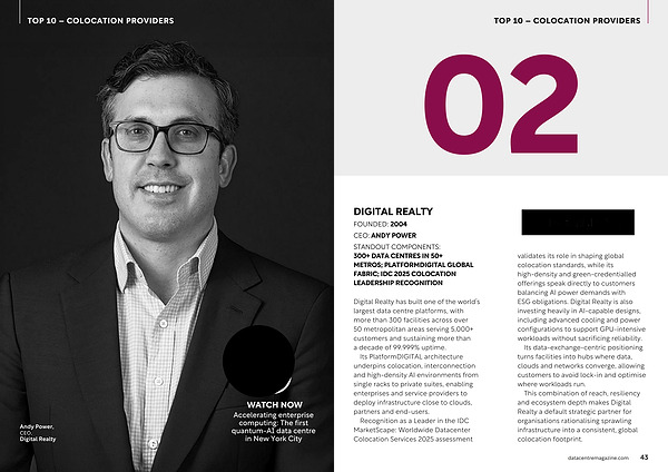 TOP 10 – COLOCATION PROVIDERS Andy Power, CEO, Digital Realty