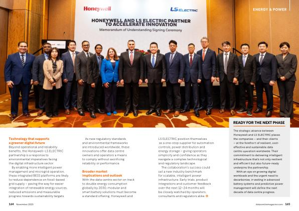 The strategic alliance between Honeywell and LS ELECTRIC places the companies – and their clients – at the forefront of resilient, costeffective and sustainable data centre operation worldwide. Their commitment to delivering intelligent infrastructure that’ s not only resilient and efficient but also future-ready underpins the partnership.