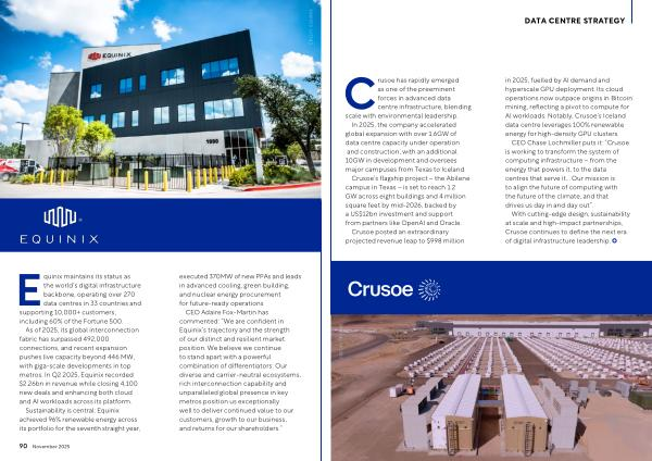 As of 2025, its global interconnection fabric has surpassed 492,000 connections, and recent expansion pushes live capacity beyond 446 MW, with giga-scale developments in top metros. In Q2 2025, Equinix recorded $ 2.26bn in revenue while closing 4,100 new deals and enhancing both cloud and AI workloads across its platform. Sustainability is central: Equinix achieved 96 % renewable energy across its portfolio for the seventh straight year, executed 370MW of new PPAs and leads in advanced cooling, green building, and nuclear energy procurement for future-ready operations.