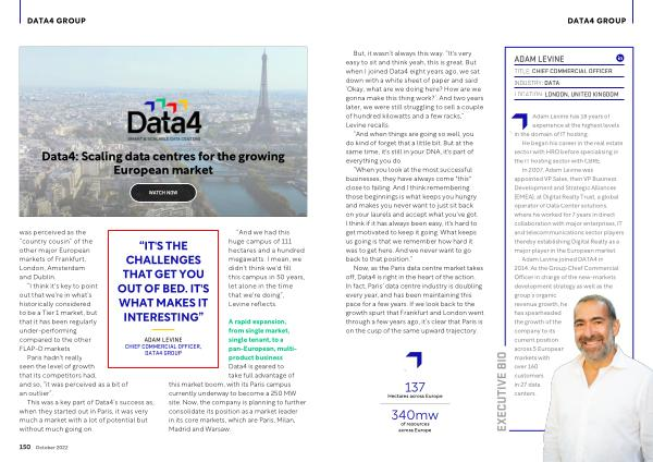 But , it wasn ’ t always this way . “ It ' s very easy to sit and think yeah , this is great . But when I joined Data4 eight years ago , we sat down with a white sheet of paper and said ‘ Okay , what are we doing here ? How are we gonna make this thing work ?’. And two years later , we were still struggling to sell a couple of hundred kilowatts and a few racks ,” Levine recalls .