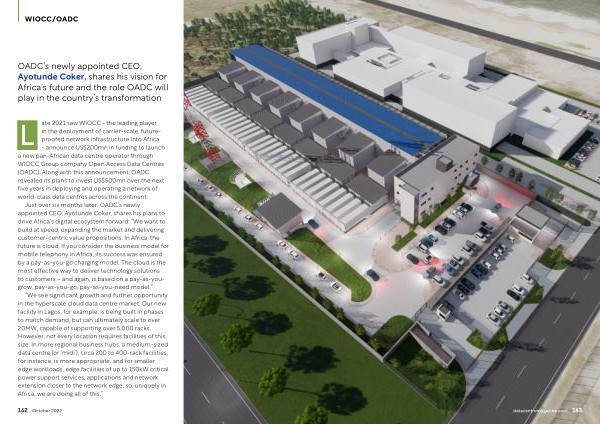 “ We see significant growth and further opportunity in the hyperscale cloud data centre market . Our new facility in Lagos , for example , is being built in phases to match demand , but can ultimately scale to over 20MW , capable of supporting over 5,000 racks . However , not every location requires facilities of this size . In more regional business hubs , a medium-sized data centre ( or ‘ midi ’), circa 200 to 400-rack facilities , for instance , is more appropriate , and for smaller edge workloads , edge facilities of up to 150kW critical power support services , applications and network extension closer to the network edge ; so , uniquely in Africa , we are doing all of this .”