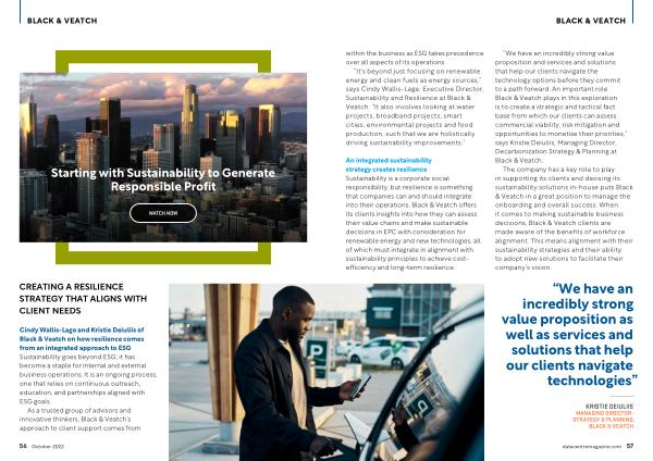 Cindy Wallis-Lage and Kristie Deiuliis of Black & Veatch on how resilience comes from an integrated approach to ESG Sustainability goes beyond ESG ; it has become a staple for internal and external business operations . It is an ongoing process , one that relies on continuous outreach , education , and partnerships aligned with ESG goals .