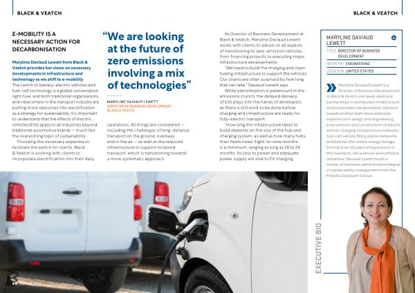 As Director of Business Development at Black & Veatch , Maryline Daviaud Lewett works with clients to advise on all aspects of transitioning to zero-emission vehicles , from financing projects to executing major infrastructure developments .