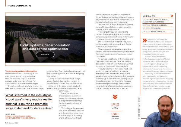 In 2020 , Miles joined Trane Technologies as the Vertical Market Leader for Data Centers . He leads a consulting team , designing and implementing precision cooling solutions that save energy , maximise uptime and accelerate speed-to-market .