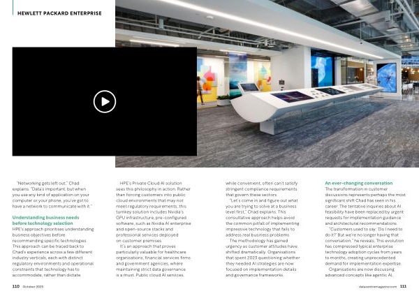 Understanding business needs before technology selection HPE’ s approach prioritises understanding business objectives before recommending specific technologies. This approach can be traced back to Chad’ s experience across a few different industry verticals, each with distinct regulatory environments and operational constraints that technology has to accommodate, rather than dictate.