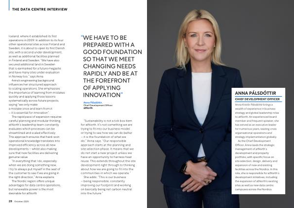 Iceland, where it established its first operations in 2009. In addition to its four other operational sites across Finland and Sweden, it is about to open its first Danish site, with a second under development, as well as additional facilities planned in Finland and Sweden.“ We have also secured additional land in Sweden that is earmarked for a future megasite and have many sites under evaluation in Norway too,” says Anna.