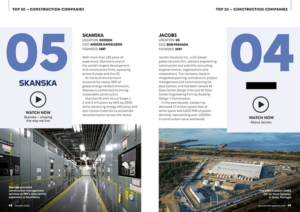 Jacobs Solutions Inc., a US-based global services firm, delivers engineering, construction and scientific consulting to governments, organisations and corporations. The company leads in integrated planning, architecture, project management and commissioning for data centres, and has been ranked # 1 Data Center Design Firm and # 1 Data Center Engineering Firm by Building Design + Construction.