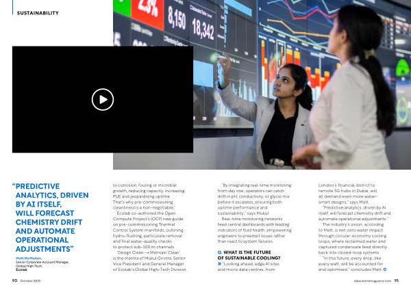 Ecolab co‐authored the Open Compute Project’ s( OCP) new guide on pre‐commissioning Thermal Control System manifolds, outlining hydro‐flushing, particulate removal and final water‐quality checks to protect sub‐100 m channels.