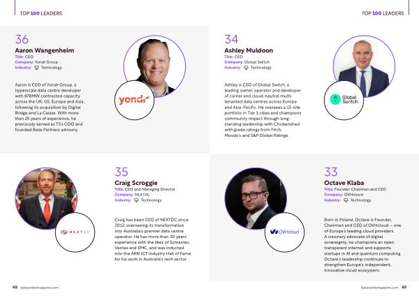 Aaron is CEO of Yondr Group, a hyperscale data centre developer with 878MW contracted capacity across the UK, US, Europe and Asia, following its acquisition by Digital Bridge and La Caisse. With more than 25 years of experience, he previously served as T5’ s COO and founded Base Partners advisory.