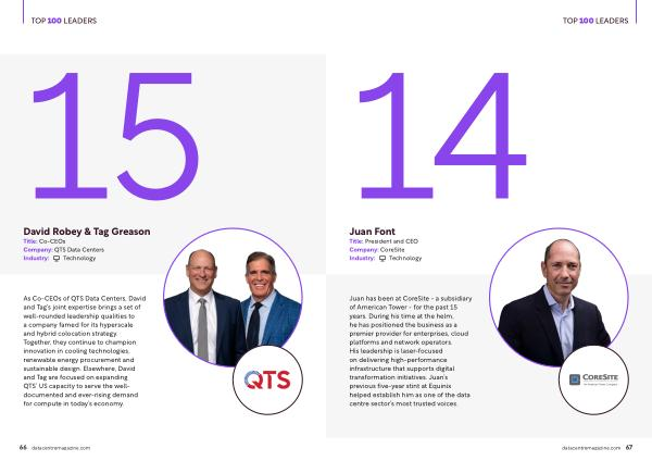 Juan has been at CoreSite- a subsidiary of American Tower- for the past 15 years. During his time at the helm, he has positioned the business as a premier provider for enterprises, cloud platforms and network operators. His leadership is laser-focused on delivering high-performance infrastructure that supports digital transformation initiatives. Juan’ s previous five-year stint at Equinix helped establish him as one of the data centre sector’ s most trusted voices. datacentremagazine. com 67