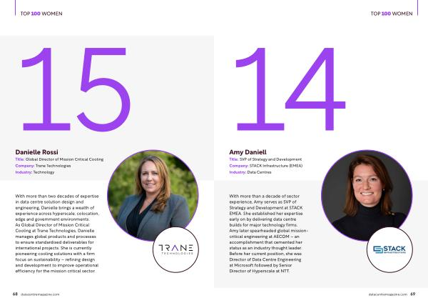 With more than a decade of sector experience, Amy serves as SVP of Strategy and Development at STACK EMEA. She established her expertise early on by delivering data centre builds for major technology firms. Amy later spearheaded global missioncritical engineering at AECOM – an accomplishment that cemented her status as an industry thought leader. Before her current position, she was Director of Data Centre Engineering at Microsoft followed by Senior Director of Hyperscale at NTT. datacentremagazine. com 69