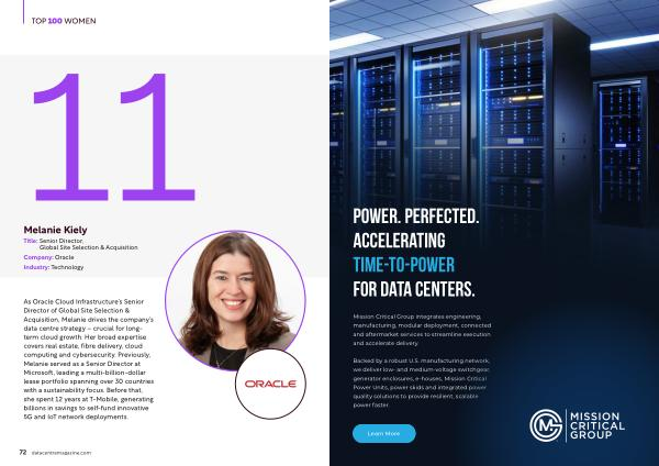 As Oracle Cloud Infrastructure’ s Senior Director of Global Site Selection & Acquisition, Melanie drives the company’ s data centre strategy – crucial for longterm cloud growth. Her broad expertise covers real estate, fibre delivery, cloud computing and cybersecurity. Previously, Melanie served as a Senior Director at Microsoft, leading a multi-billion-dollar lease portfolio spanning over 30 countries with a sustainability focus. Before that, she spent 12 years at T-Mobile, generating billions in savings to self-fund innovative 5G and IoT network deployments.