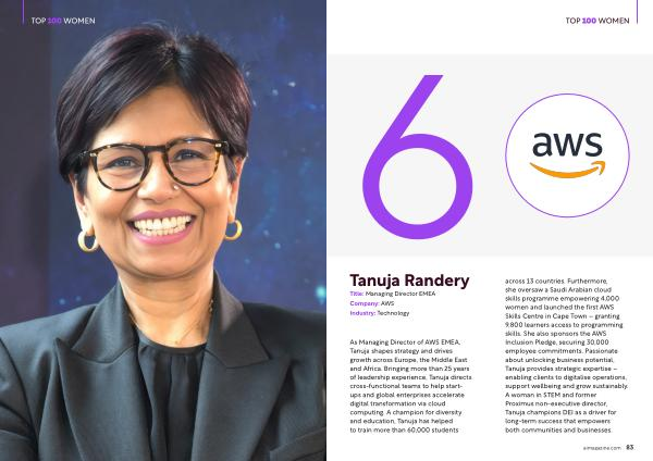 As Managing Director of AWS EMEA, Tanuja shapes strategy and drives growth across Europe, the Middle East and Africa. Bringing more than 25 years of leadership experience, Tanuja directs cross-functional teams to help startups and global enterprises accelerate digital transformation via cloud computing. A champion for diversity and education, Tanuja has helped to train more than 60,000 students across 13 countries. Furthermore, she oversaw a Saudi Arabian cloud skills programme empowering 4,000 women and launched the first AWS Skills Centre in Cape Town – granting 9,800 learners access to programming skills. She also sponsors the AWS Inclusion Pledge, securing 30,000 employee commitments. Passionate about unlocking business potential, Tanuja provides strategic expertise – enabling clients to digitalise operations, support wellbeing and grow sustainably. A woman in STEM and former Proximus non-executive director, Tanuja champions DEI as a driver for long-term success that empowers both communities and businesses.