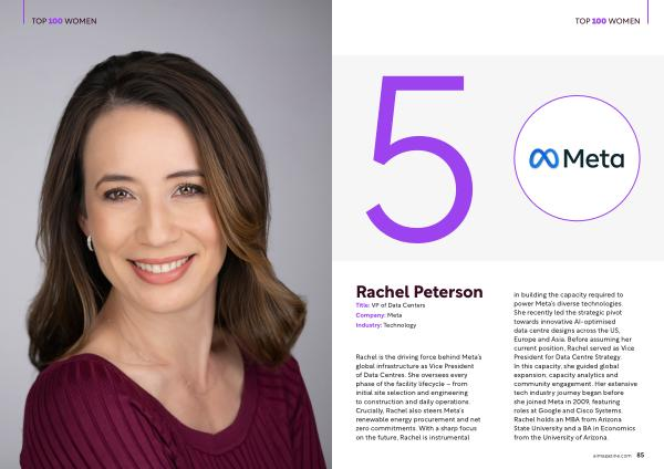 Rachel is the driving force behind Meta’ s global infrastructure as Vice President of Data Centres. She oversees every phase of the facility lifecycle – from initial site selection and engineering to construction and daily operations. Crucially, Rachel also steers Meta’ s renewable energy procurement and net zero commitments. With a sharp focus on the future, Rachel is instrumental in building the capacity required to power Meta’ s diverse technologies. She recently led the strategic pivot towards innovative AI-optimised data centre designs across the US, Europe and Asia. Before assuming her current position, Rachel served as Vice President for Data Centre Strategy. In this capacity, she guided global expansion, capacity analytics and community engagement. Her extensive tech industry journey began before she joined Meta in 2009, featuring roles at Google and Cisco Systems. Rachel holds an MBA from Arizona State University and a BA in Economics from the University of Arizona.